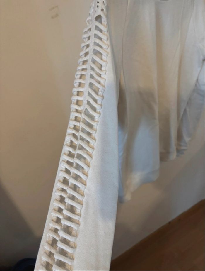 Pull, blanc à trou que les manche, porter quelques fois