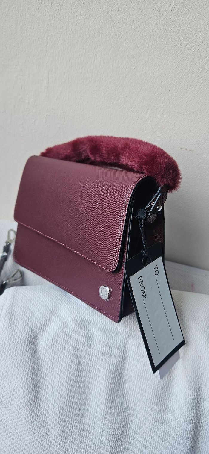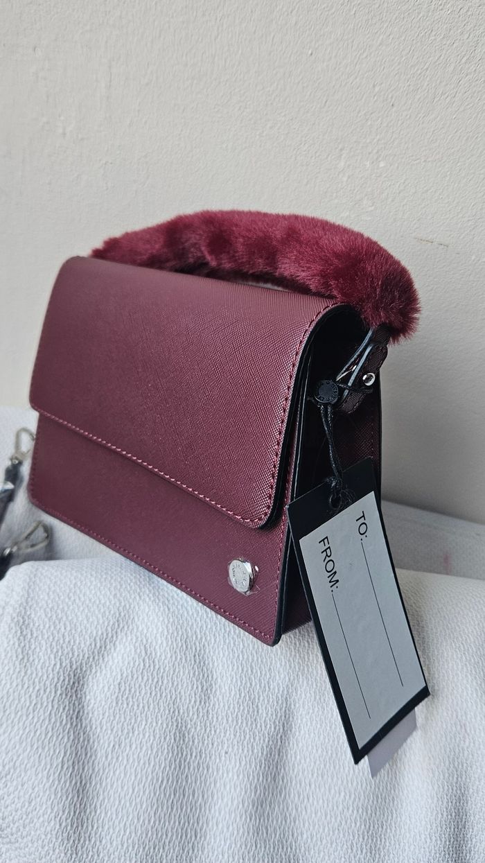 Joli petit sac à main avec anse en fourrure et bandoulière Possibilité de retirer la fourrure et de porter sans bandoulière