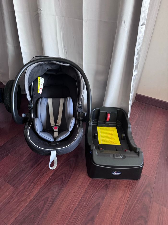 Vends pack complet Chicco Activ 3, tout-en-un, idéal de la naissance jusqu’aux premières années de bébé. Contenu du pack : • Poussette tout-terrain Chicco Activ 3 : 3 grandes roues, suspension, frein au guidon, siège inclinable, pliage facile • Nacelle (landau) : confortable dès la naissance, idéale pour les premiers mois avec harnais de sécurité pour voiture. • Cosy (siège auto groupe 0+) : sécurisé et homologué pour les trajets en voiture. • Base voiture : se fixe avec ceinture dans la voiture, permet de clipser/déclipser le cosy en 1 geste Caractéristiques : • Utilisable dès la naissance • Confort optimal pour bébé + maniabilité parfaite pour les parents • Pliage compact • Guidon réglable en hauteur • Frein intégré au guidon • Capote avec fenêtre • Tissus déhoussables et lavables État : bon état – Ensemble complet entretenu, propre et fonctionnel. Couleur : noir Pack très pratique et robuste, idéal en ville comme en campagne. À venir récupérer sur Toulouse Me contacter si besoin de photos ou de renseignements supplémentaires.