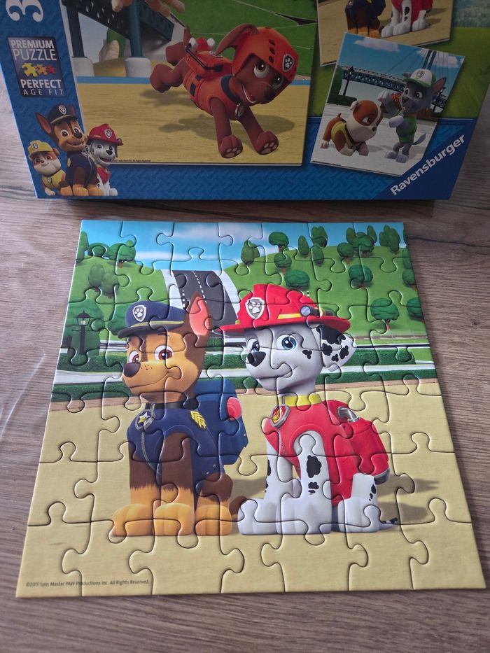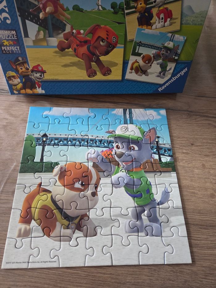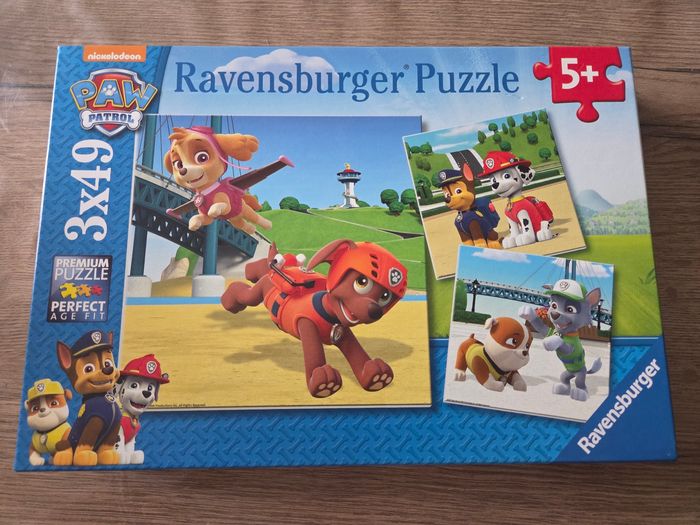 Boîte de 3 puzzles de 49 pièces chacuns. Très bon état, complet. Âge 5 ans et +