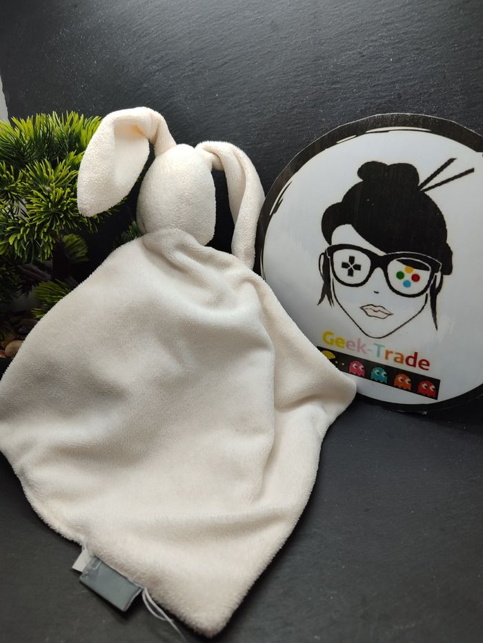 Doudou Lapin Blanc Beige Crème Marron Sergent Major Étoile Mouchoir Plat 1095 - photo numéro 1