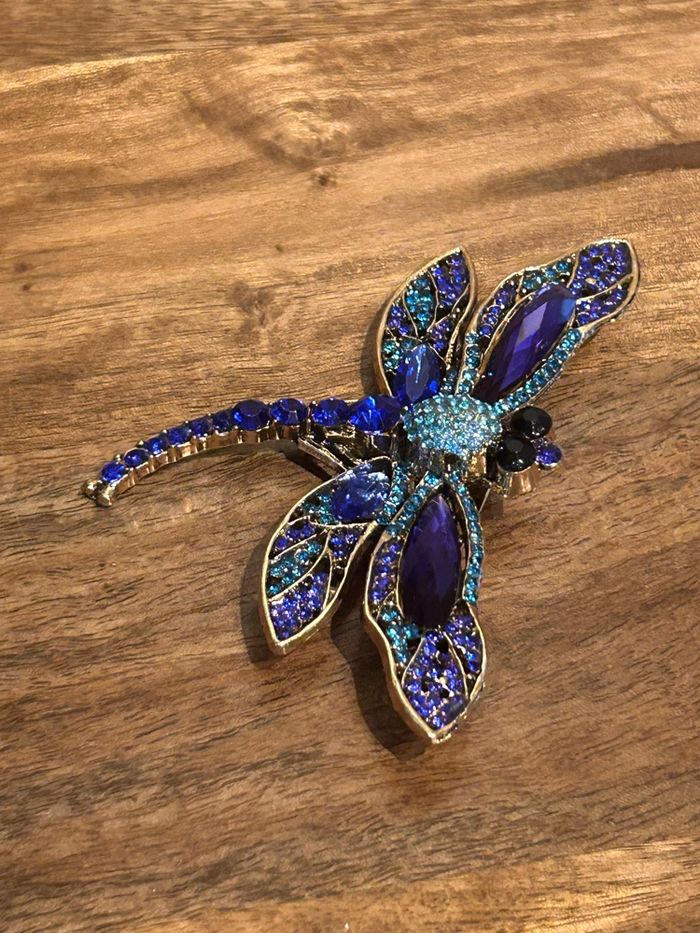 Grande broche libellule bleu 10 X 7 cm environ