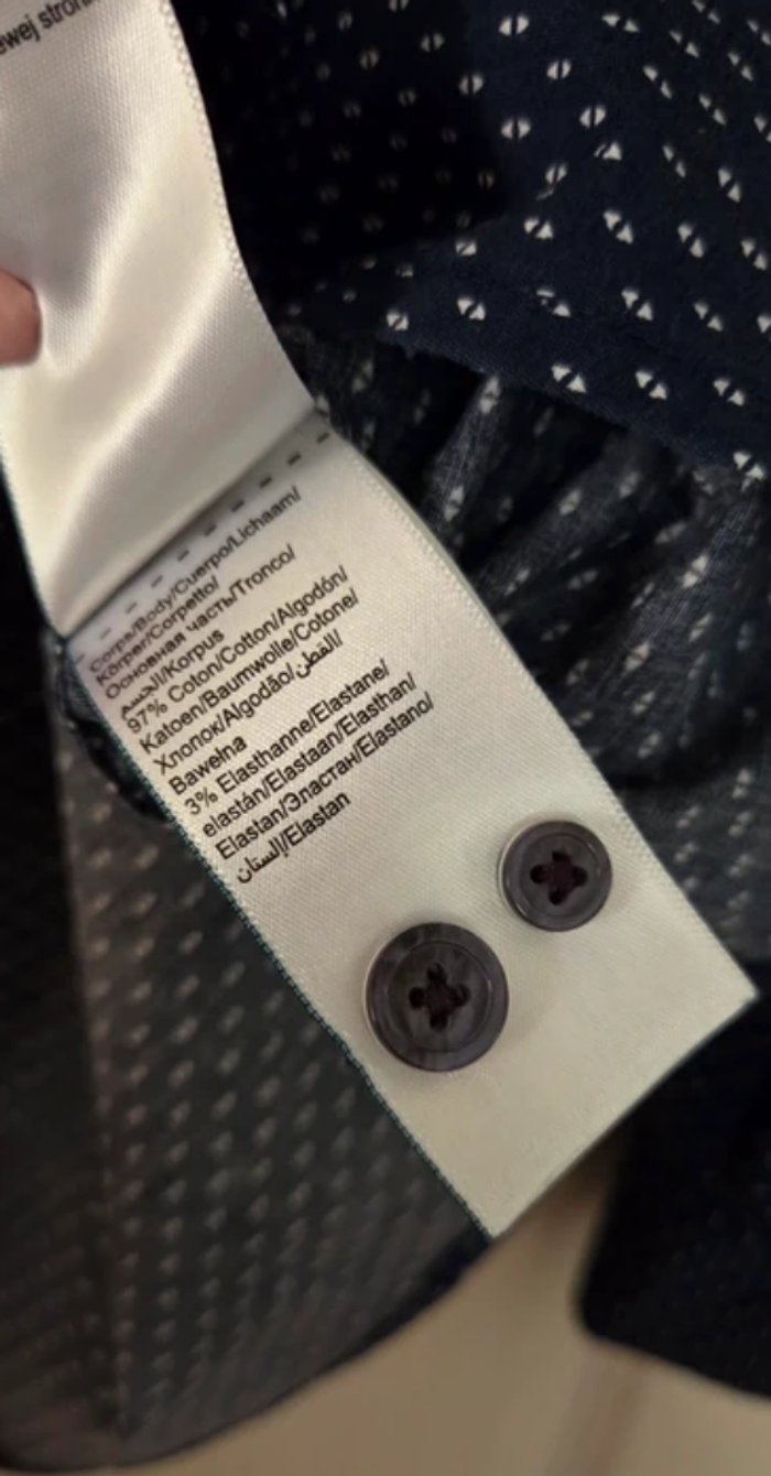 Très belle chemise homme JULES, modèle Slim #Louis, idéale pour un style élégant, moderne et soigné 👌 Sa coupe slim fit met parfaitement la silhouette en valeur, tandis que ses motifs blancs discrets sur fond bleu marine apportent une touche chic et actuelle. Une pièce facile à porter aussi bien au travail qu’en sortie ou en tenue casual chic. 🔹 Détails : Marque : JULES Modèle : Slim #Louis Taille : M Coupe : Cintrée / Slim fit Couleur : Bleu marine à motifs blancs Longueur : 69,5 cm Largeur sous bras : 49 cm 📌 État : Excellent état – portée seulement quelques fois, aucun défaut 📸 Photos détaillées disponibles (motifs, col, boutons, étiquettes) 🛍️ Parfaite pour : ✔️ Travail / bureau ✔️ Sorties / soirées ✔️ Look casual chic ou élégant ✨ Envoi rapide et soigné La couleur du vêtement peut légèrement varié en raison des conditions d'éclairages. Veuillez examiner attentivement les photos, les détails et les mesures fournies. Pour toutes informations complémentaires n'hésitez pas à me contacter.