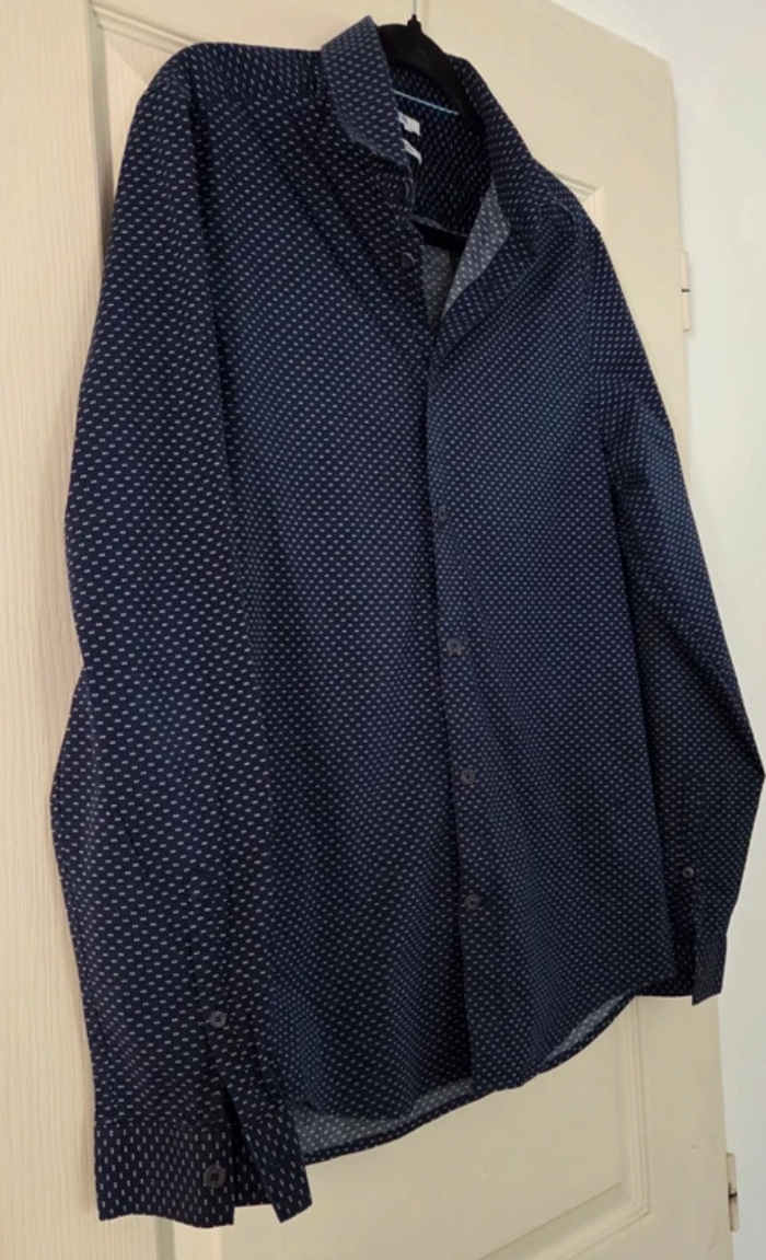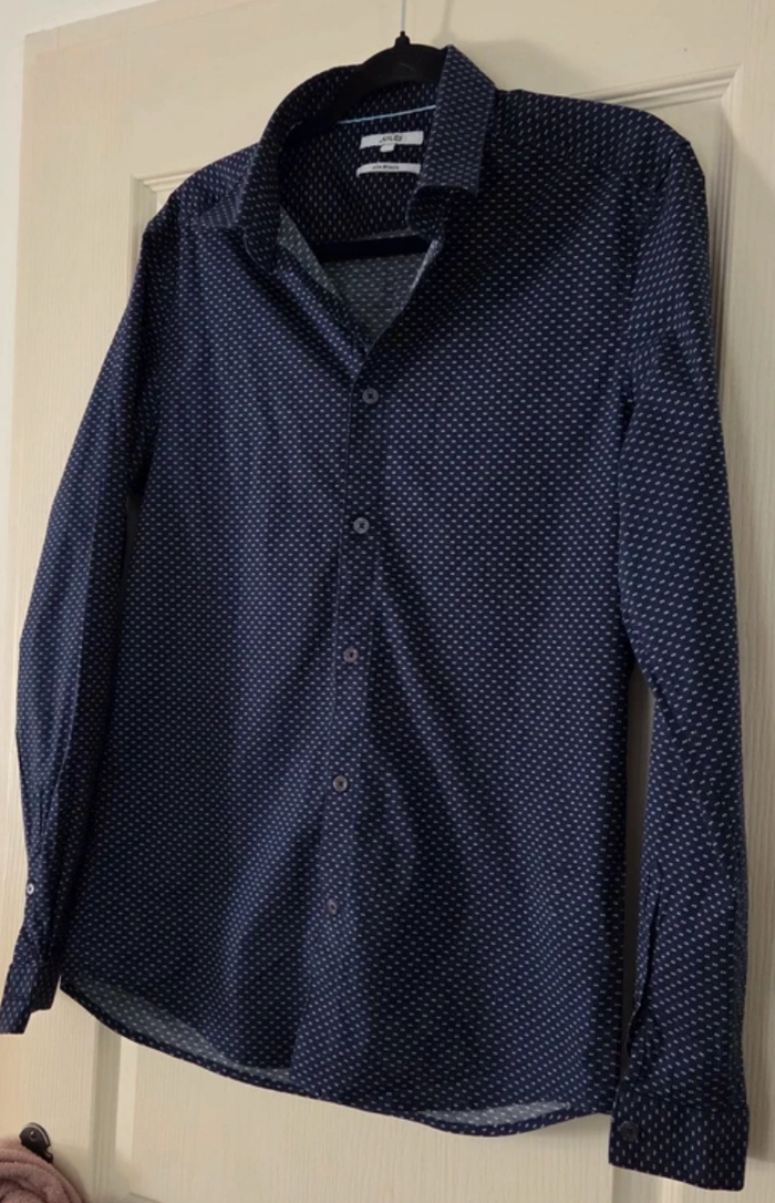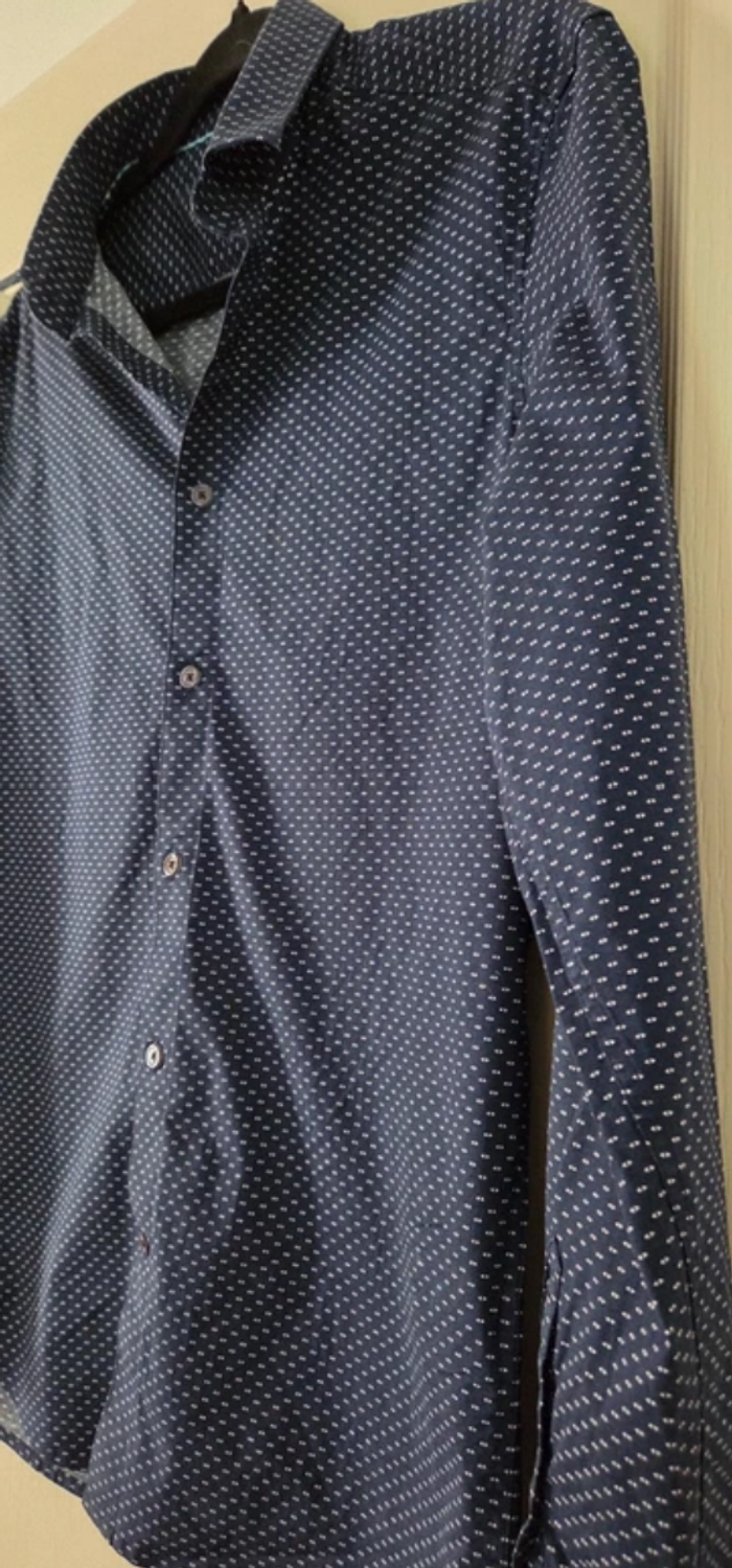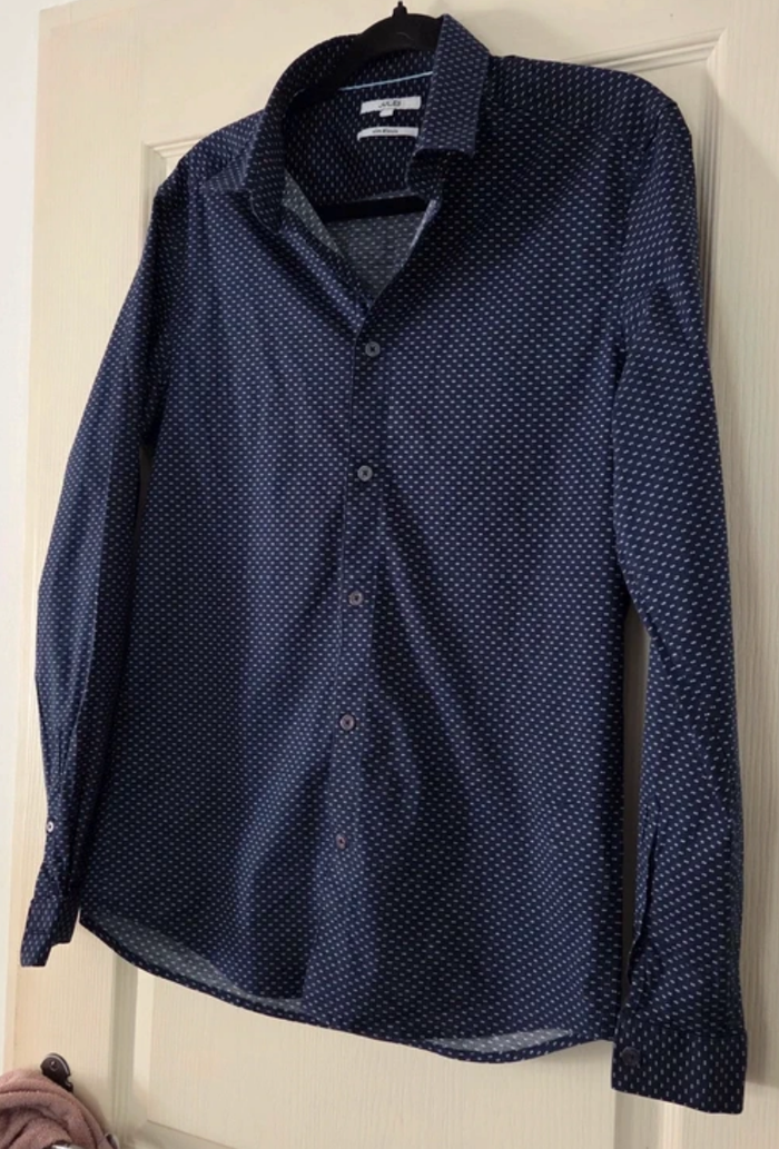 Chemise homme JULES slim fit – Bleu marine à motifs – Taille M – Excellent état - photo numéro 1