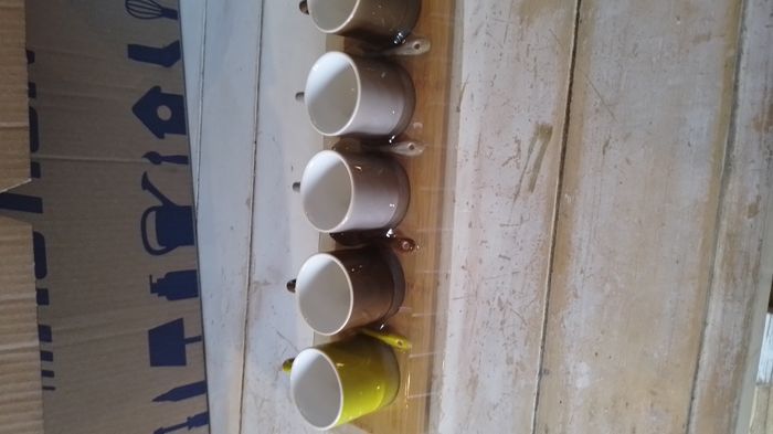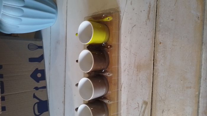lot de 6 tasses avec patites cuillére et plateau en bois