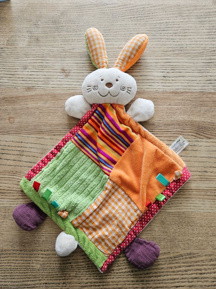 Son format plat plait beaucoup aux petites mains. Coloré et tout doux. Marque La Galleria. En très bon état.