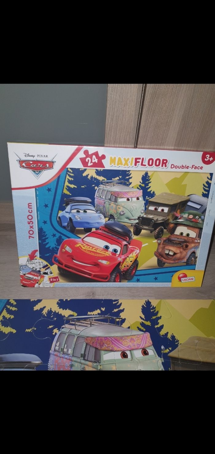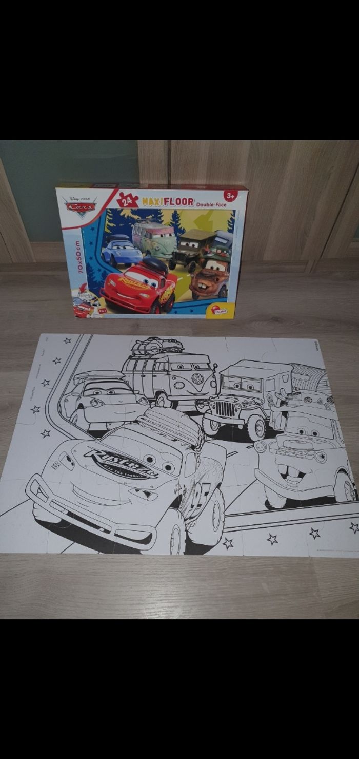 Grand puzzle Cars 2 faces. La face arrière est un coloriage. Comme neuf, complet