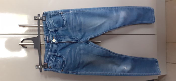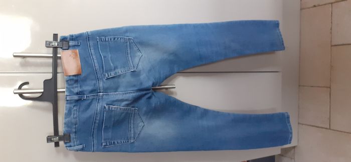 Jean garçon slim "E-Bound Denim" 12 ans Couleur: bleu Ceinture ajustable 65% coton 33% polyester 2% Elasthanne En très bon état, juste 1 petit accroc sur la jambe droite , d'où le prix attractif