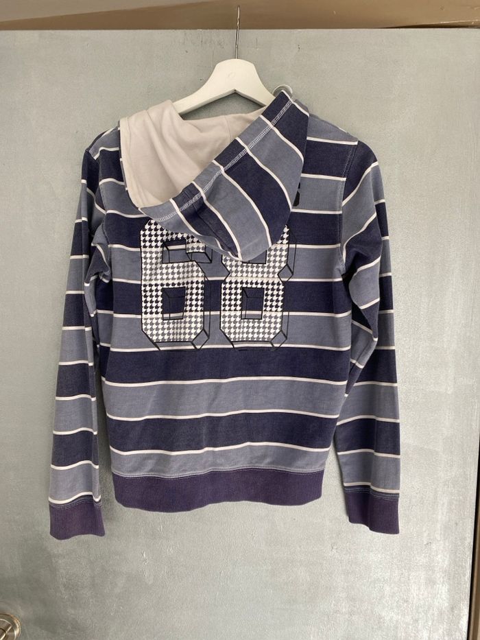 Gilet zippé avec capuche Geox à rayures bleu et blanc taille 12 ans  - photo numéro 2