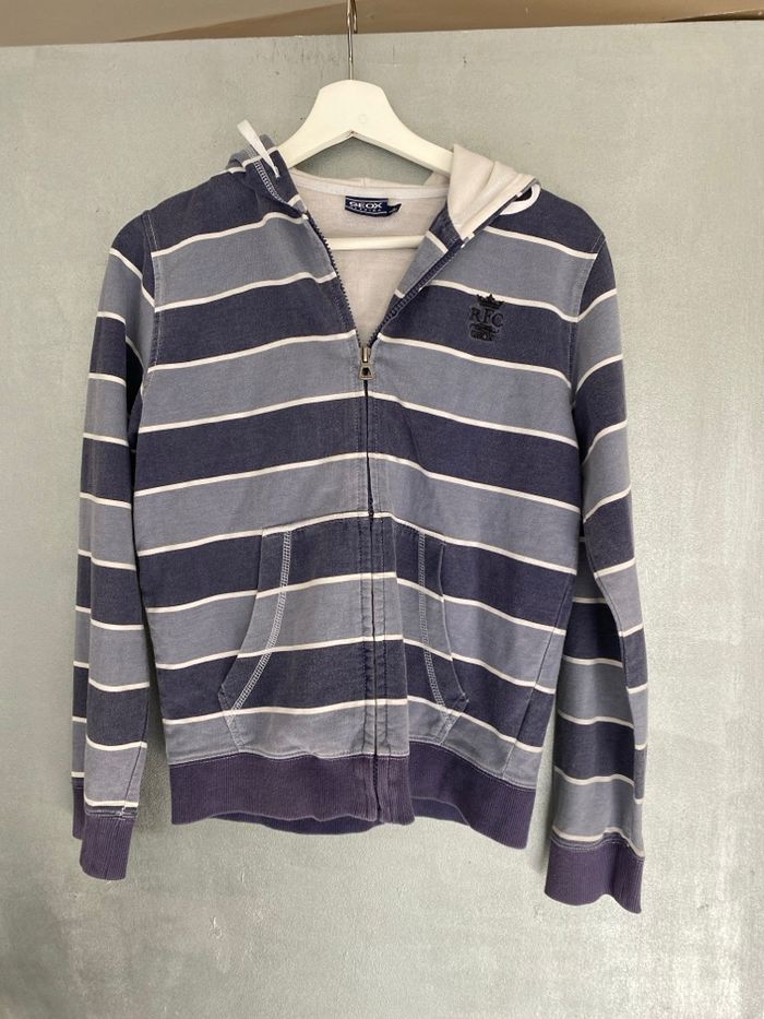 Gilet zippé avec capuche Geox à rayures bleu et blanc taille 12 ans  - photo numéro 1