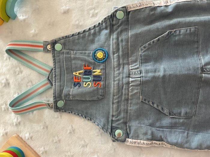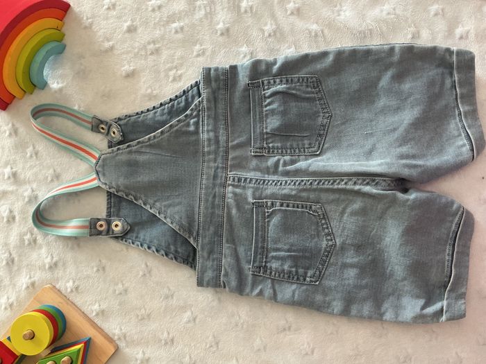salopette short bleu clair pressions entre les jambes poche devant 24 mois mots d'enfants - photo numéro 2