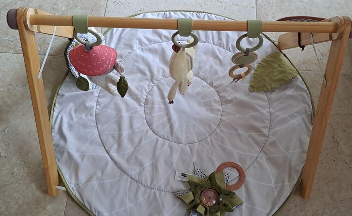 Tapis d éveil élégant en bois avec jouets musicals de la marque Tiny love Complet Collection Boho chic Élégante arche en bois pour développer la motricité de bébé qui s intègre parfaitement à votre intérieur. Trés bon état Trés peu servi