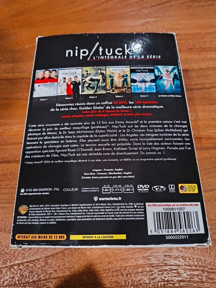 💉 Nip/Tuck - Intégrale Saisons 1 à 6 - Coffret DVD 🏥 État : Très bon état. * Contenu : Intégrale de la série (Saisons 1-6 / 100 épisodes). * Langues : Français / Anglais. * Durée : +63 heures. 🛍️ Remise sur lot possible ! 🚀 Envoi rapide et protégé (Mondial Relay uniquement) ! 📦 #NipTuck #Intégrale #DVD #SérieCulte #Collection #QuasiNeuf