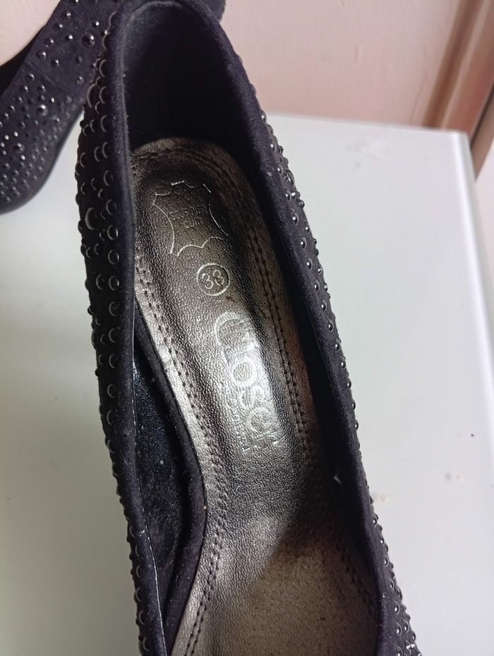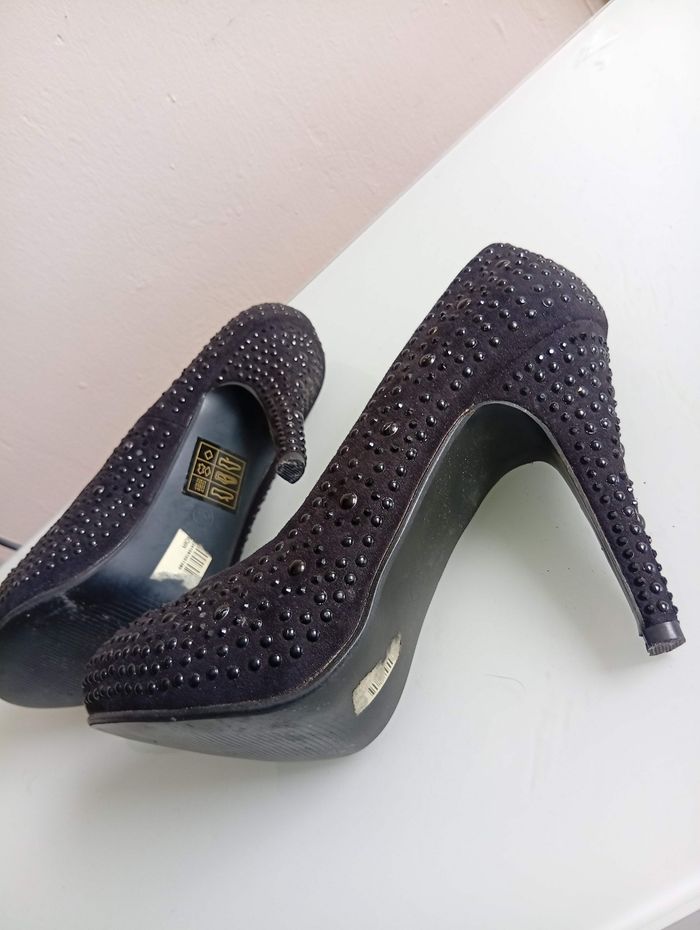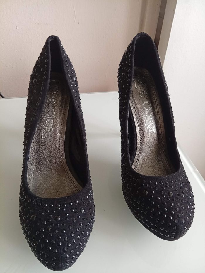chaussures à talon Chaussea bi Closer pointure 38 sous pied cuir. ornée de Demi perle noir. très bon état