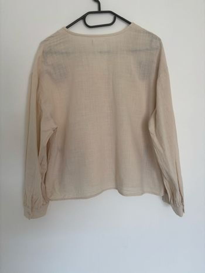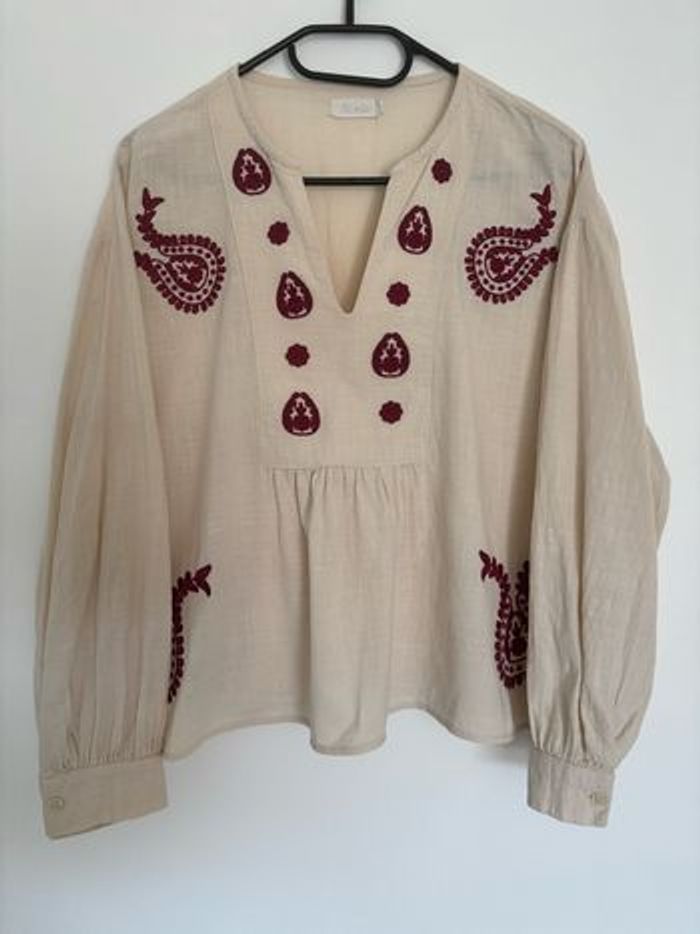 Blouse 100% coton, légère et élégante, avec des broderies délicates. Un mélange de confort moderne et de charme intemporel. Taille L