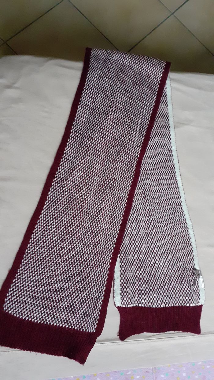 Vends une écharpe en maille, douce et chaude, couleur prune et blanc, marque Orchestra Basics, taille unique. Longueur : 126 cm Largeur : 19 cm.