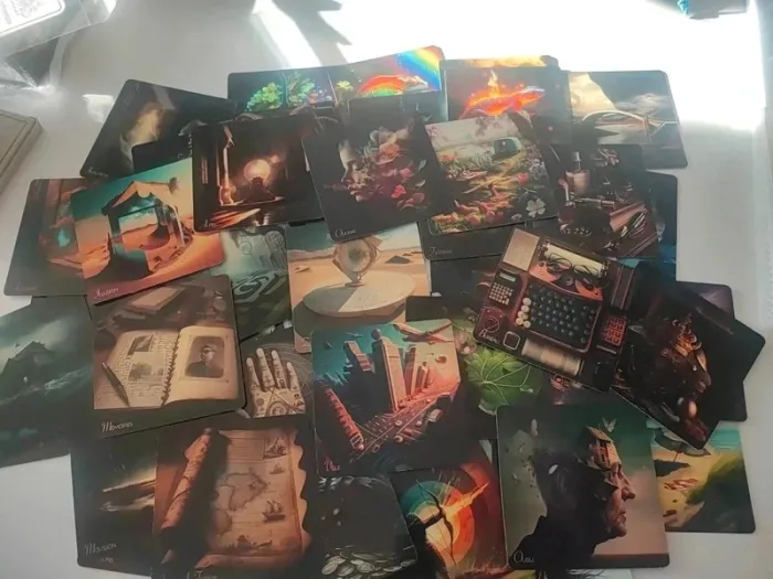 🔮 Oriacle de Kévin Meunier – Édition autoéditée glossy + guide book imprimé Je vends le superbe Oriacle de Kévin Meunier, dans sa version autoéditée glossy. Les 132 cartes sont en excellent état 🌟 👉 Inclus : Le jeu complet (132 cartes, format carré 38,9 x 38,8 mm, papier épais, sans boîte) Le guide book imprimé par mes soins (contenu complet du livret original, au format papier) Un pochon de rangement pour protéger et transporter le jeu ✨ 🪶 Un oracle inspirant et lumineux, idéal pour la guidance quotidienne, le développement personnel ou la divination. 📦 Envoi soigné et rapide