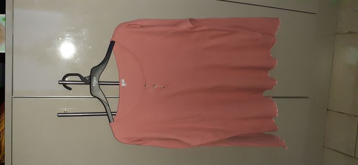 T-shirt femme manches longues "Blancheporte" taille 50. Encolure tunisienne patte 3 boutons Maille côtes plates Frisottis bas et poignets Base droite. Couleur: corail Largeur épaules: 52 cm Longueur totale: 66 cm T-shirt en excellent état.