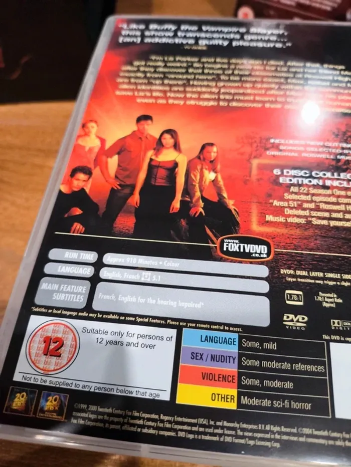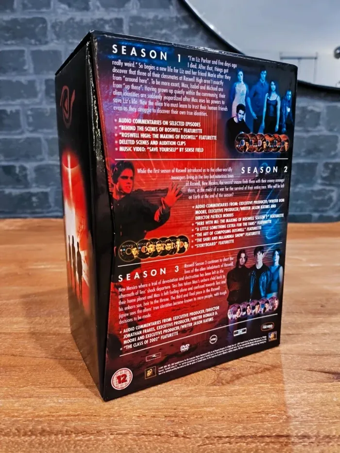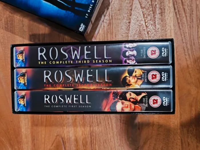 👽 Roswell - The Complete DVD Collection (Intégrale) 🛸 État : Très bon état * Contenu : Saisons 1, 2 et 3 (Intégrale). * Langues : Français (VF) et Anglais (VO). * Format : 17 DVD. 🛍️ Remise sur lot possible ! 🚀 Envoi rapide et protégé (Mondial Relay uniquement) ! 📦 #Roswell #Integrale #DVD #SerieCulte #ScienceFiction #Aliens #QuasiNeuf