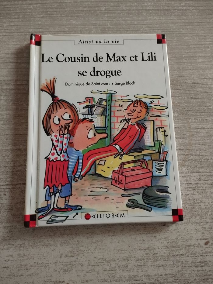 BD Max et Lili t.61 "Le cousin de Max et Lili se drogue". Tranche du livre un peu jaunie.