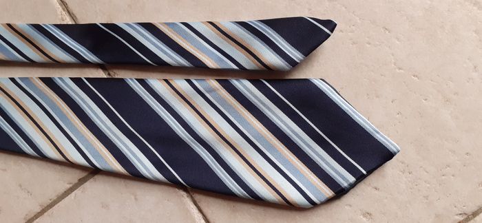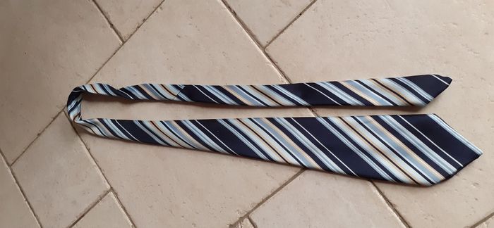 Cravate Couleur: rayures bleues 100% polyester. En excellent état car très peu portées.
