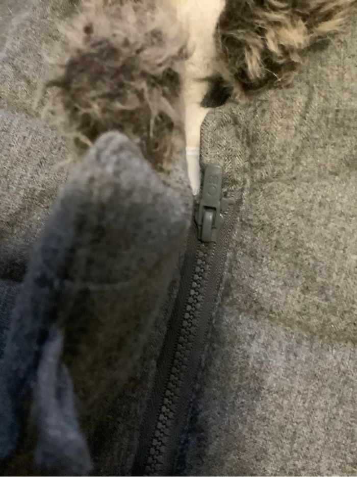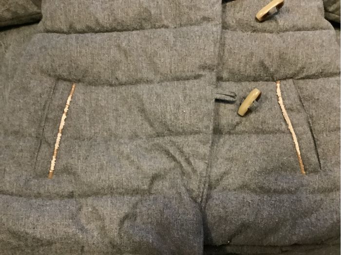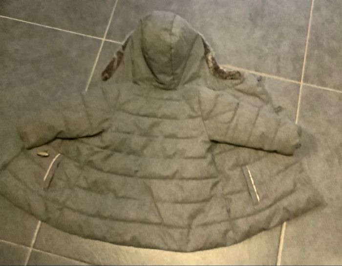 Manteau d’hiver gris, bien chaud, doublure intérieure douce. Capuche doublée. Fermeture boutons + fermeture éclair. ⚠️ Poches abîmées (voir photos). 💰 Prix : 8€ 📦 Envoi soigné et rapide