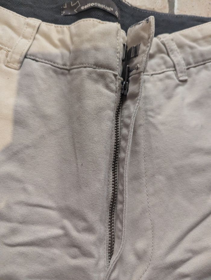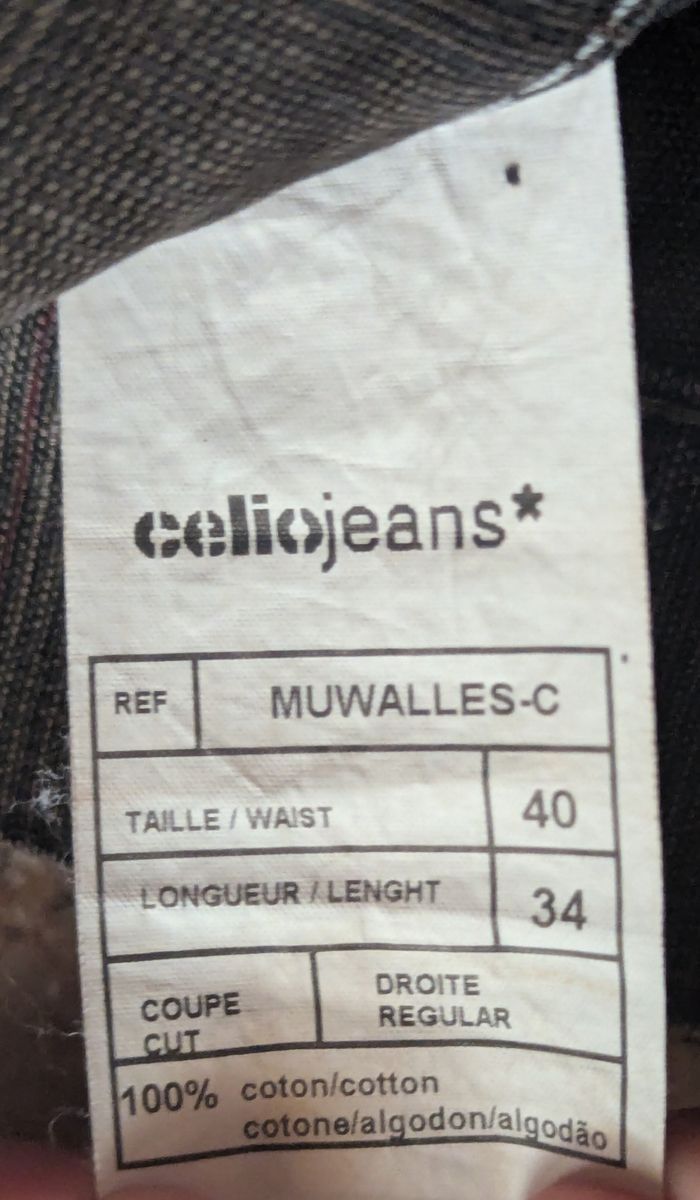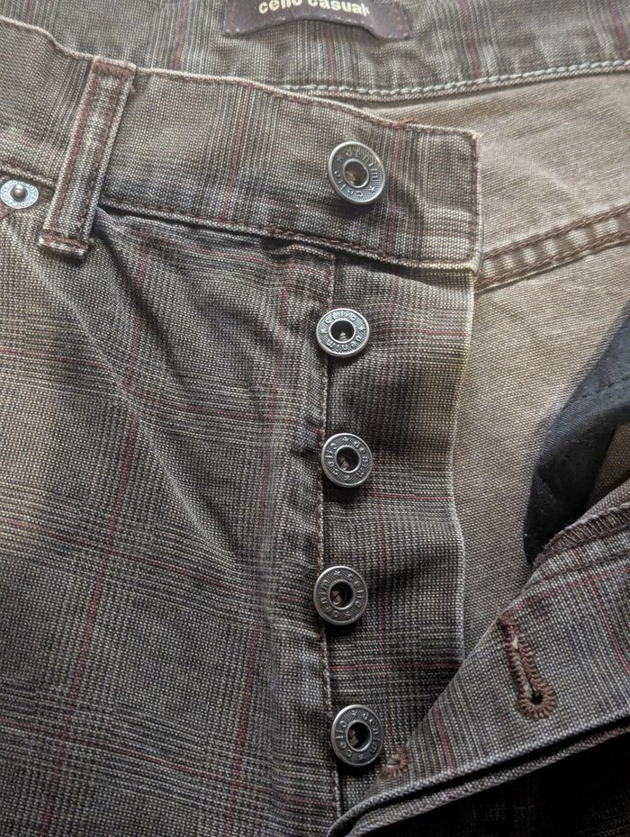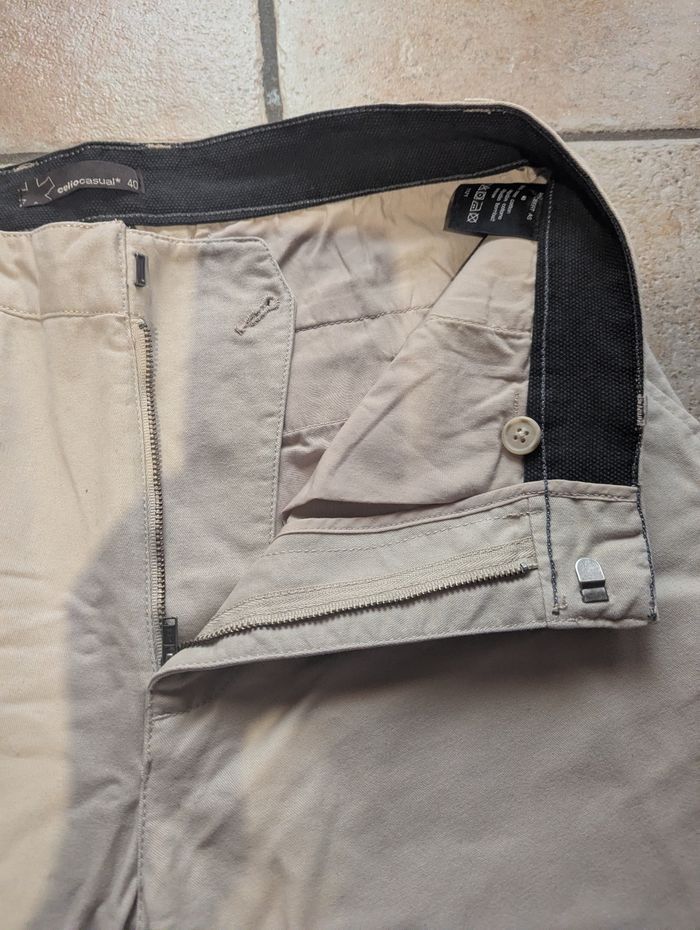 Lot de 2 pantalons Homme 1 gris a carreaux 2 poches plaquées devant et derrière Se ferme par boutons mécanique Passant pour ceinture Marque : CELIO JEAN 1 Pantalon ecru Poches plaquées devant et derrière Se ferme par fermeture éclair devant avec un crochet Marque : CELIOCASUAL A vendre rapidement... Avant départ pour déchetterie