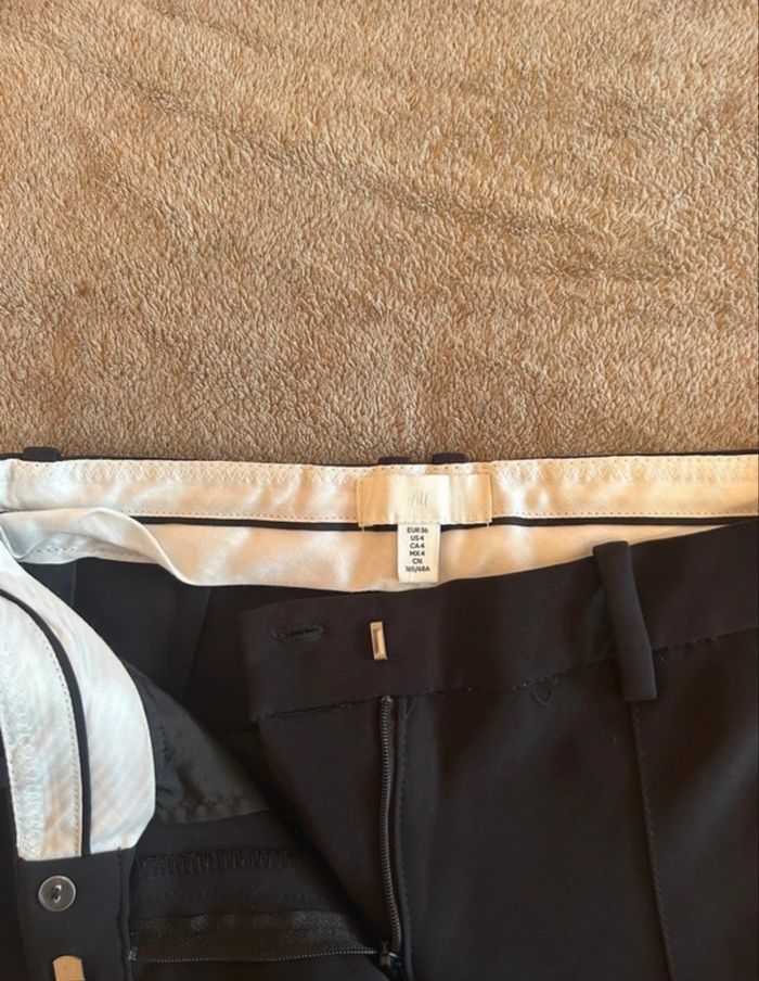 Bonjour, Je vends un pantalon de tailleur noir avec des fentes aux chevilles, taille 36