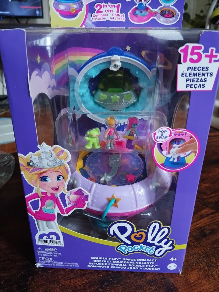 Coffret Polly pocket, soucoupe volante .ce coffret a la forme d un engin de l espace à l extérieur et s ouvre pour découvrir un magnifique château de princesse  - photo numéro 1