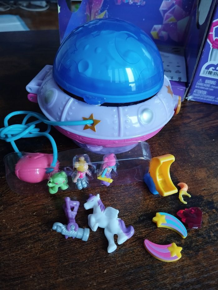 Coffret Polly pocket, soucoupe volante .ce coffret a la forme d un engin de l espace à l extérieur et s ouvre pour découvrir un magnifique château de princesse  - photo numéro 4