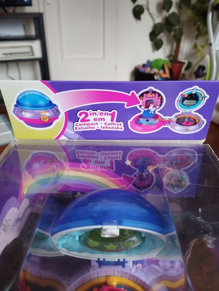 Coffret Polly pocket, soucoupe volante .ce coffret a la forme d un engin de l espace à l extérieur et s ouvre pour découvrir un magnifique château de princesse  - photo numéro 2