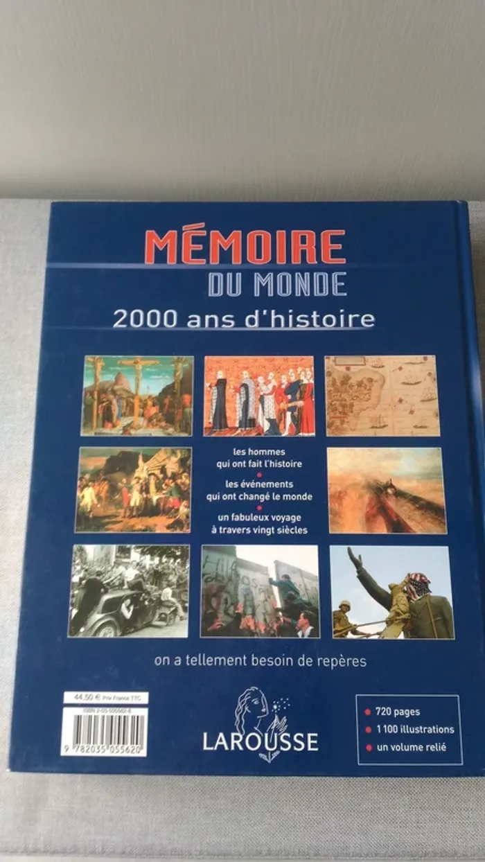 Un vaste panorama des évènements qui ont façonné le monde, de la naissance de Jésus Christ au débat sur la Constitution européenne en 2005. valeur livre 45 E Poids du livre 3 k250 gr Larousse plus de 700 pages