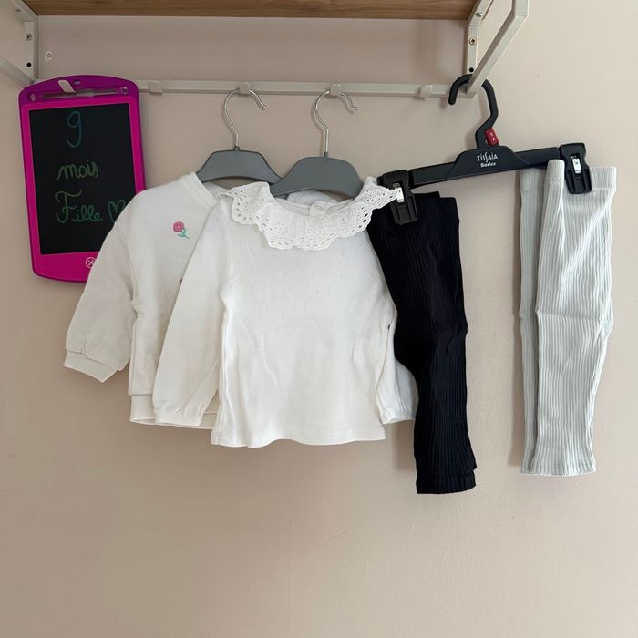 Lot de jolis vêtements, Maillot LM col Claudine, pull et leggings - T9mois - Kiabi  - photo numéro 1