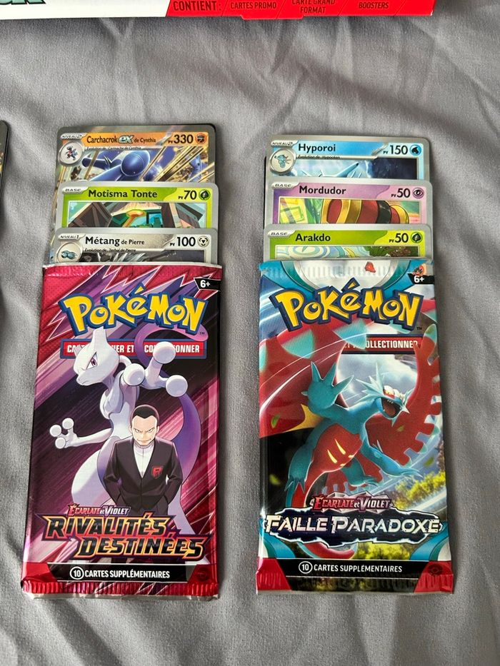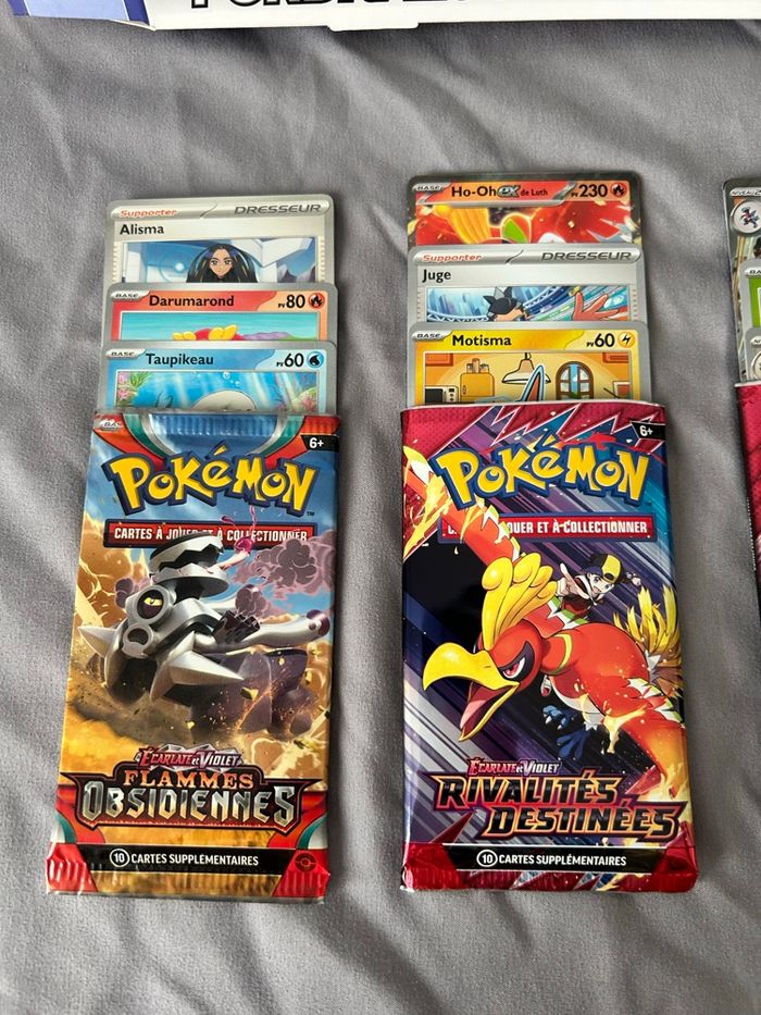 Coffret Pondralugon Ex reconditionné 4 boosters (2 EV10, 1 EV3 et 1 EV4), 2 hits (2 cartes ex DRI crachacrok et Ho-oh), 2 holos, 8 reverses, 4 énergies et 4 cartes code + les cartes promos du coffret Booster et coffret non recollé, idéal cadeau pour enfant
