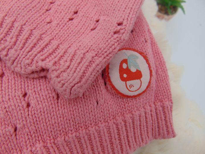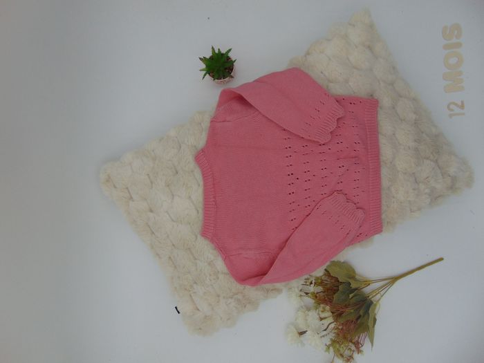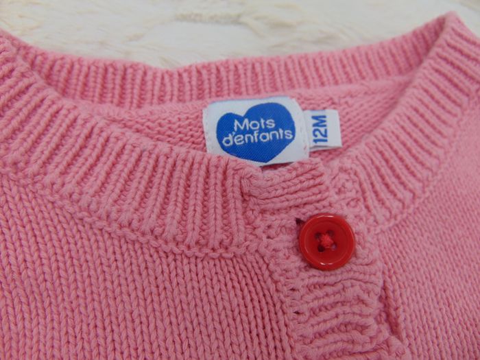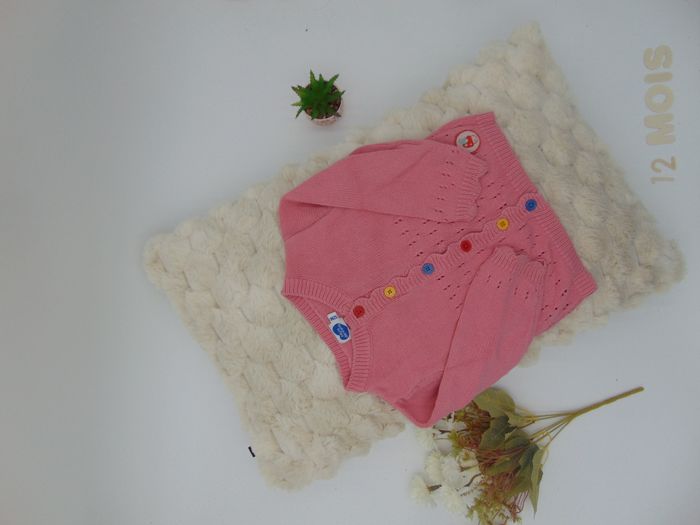 - En mailles - Boutonné - Couleur rose - Boutons rouge, jaune et bleu - Aucune tâche ni trou