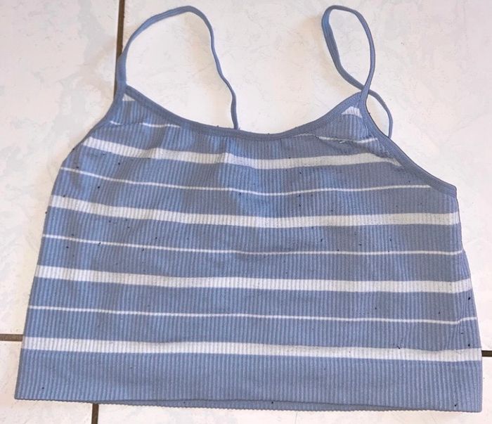 Crop top couleur bleu et blanc bon état taille s présence de bouloches