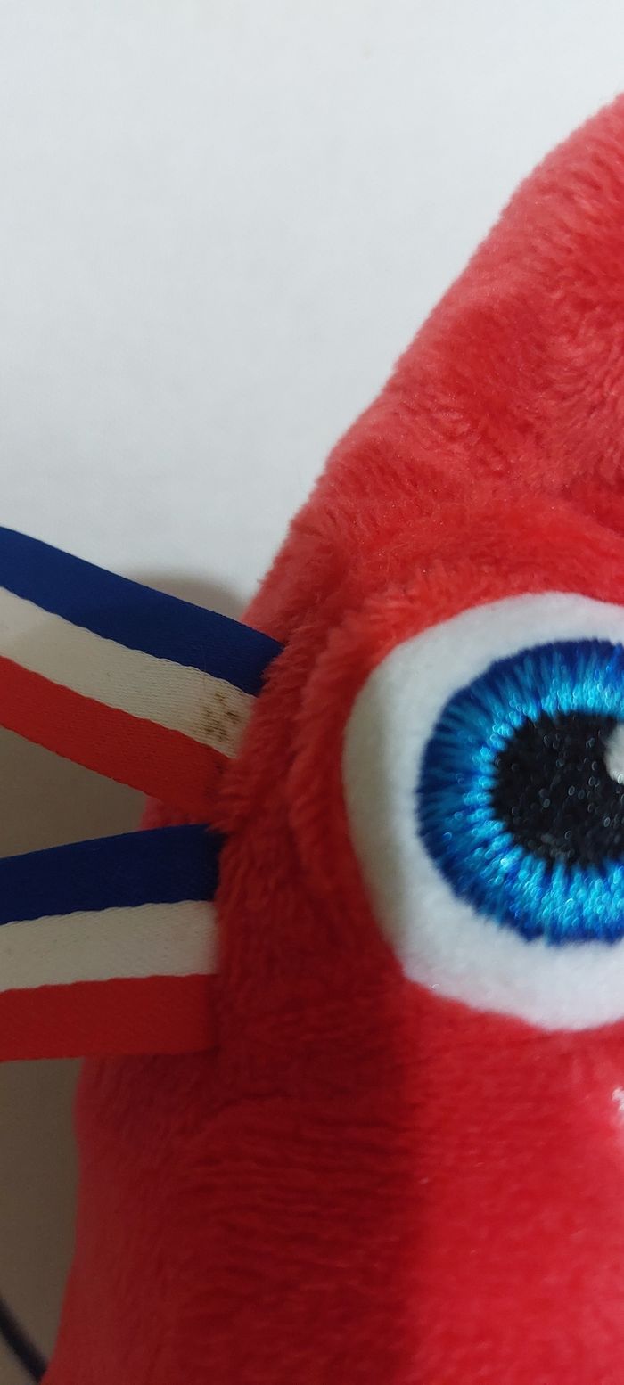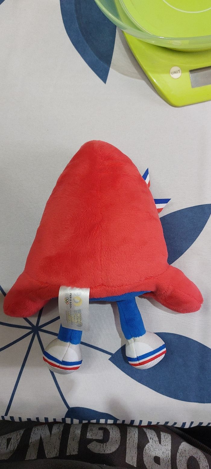 Peluche jeux olympique 2024, 23 cm debout. En très bon état il y a une petite tâche sur le ruban bleu blanc rouge (Voir photo)