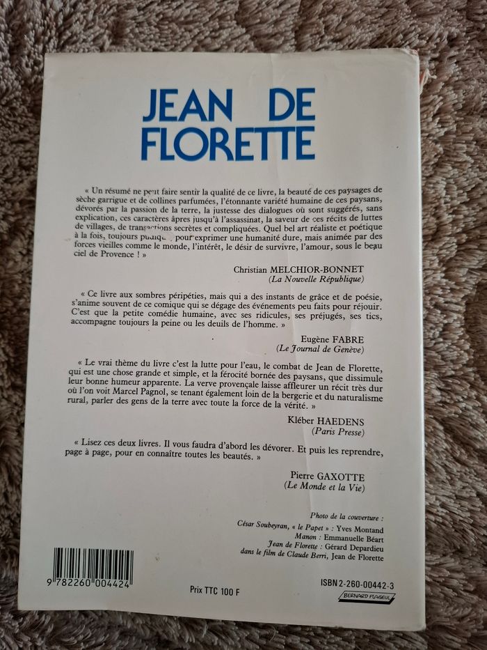 Romans Jean de Florette/Manon des Sources de Marcel Pagnol en bon état Éditions Julliard Petit et laid, Ugolin, le dernier des Soubeyran, revient du service militaire. Il retrouve son oncle, le Papet, à qui il dévoile son projet : rester au pays pour cultiver des œillets. Convaincu que l'affaire peut être rentable, le Papet accepte de financer l'entreprise.. Histoire captivante, émouvante, bouleversante. Magnifique. 487 pages lues avec beaucoup de plaisir