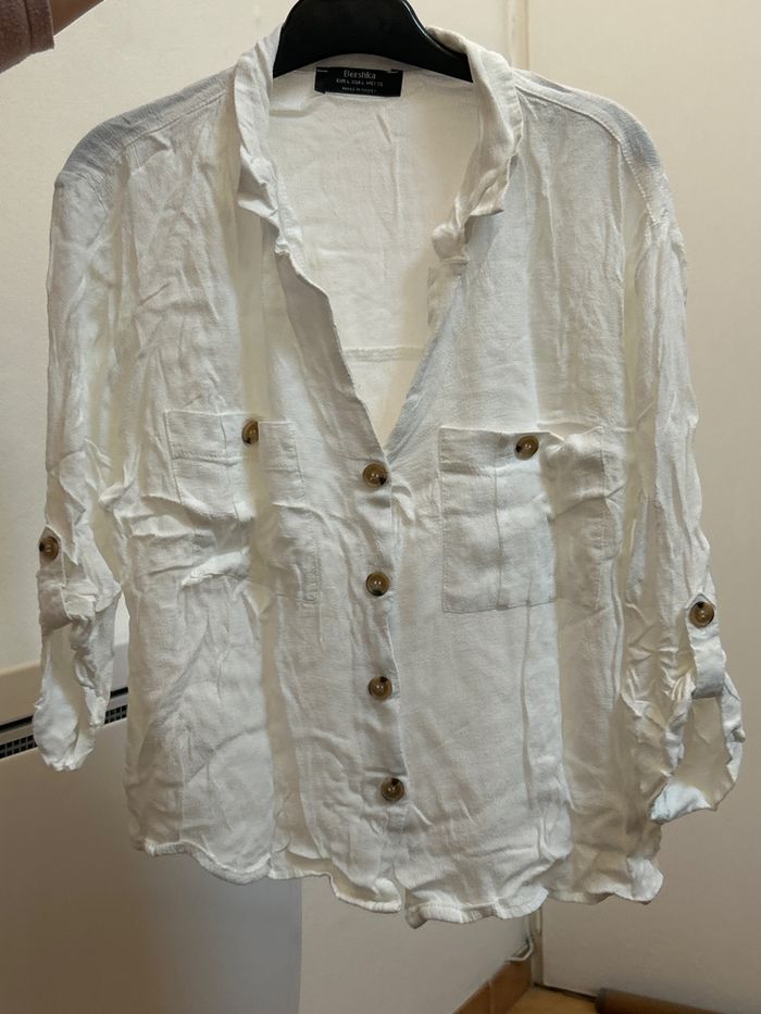 Chemise BERSHKA Taille L Ecru à bouton Polyester Bon état mais pas repassé