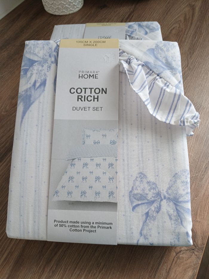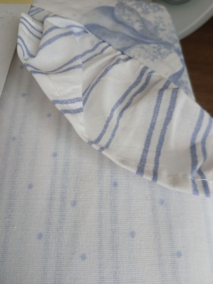 Lot de 2 . Parrure 1 personne blanche et bleu ciel a froufrou .