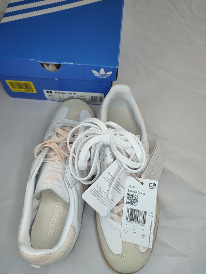 Adidas Samba OG 🩷🤍 Neuf avec étiquette ✅ Taille 38📏 Prix : 100€ Envoi sous 24h ⚡ N'hésitez pas si vous avez des questions.☺️