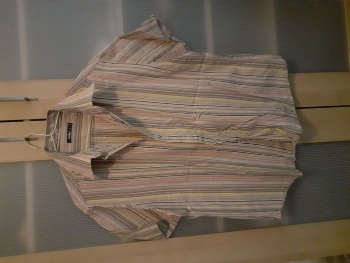 Je vends cette chemise rayée à manches courtes de la marque Celio. - Type de produit : Chemise - Marque : Celio - Taille : L - Couleur : Rayures multicolores - Caractéristiques : Manches courtes
