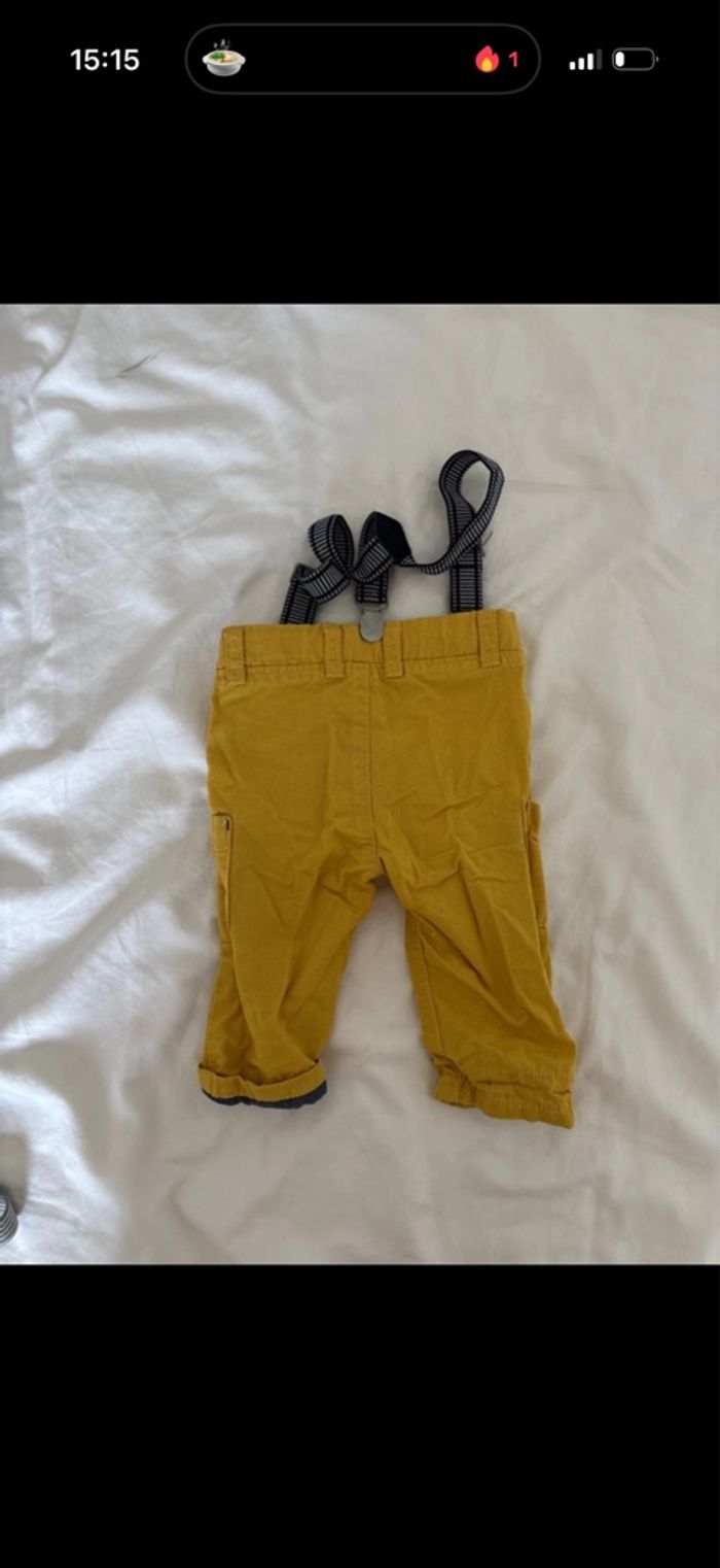 Pantalon jaune léger Obaibi avec bretelles 3 mois comme neuf