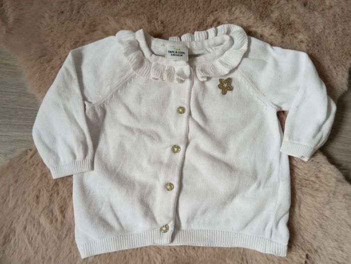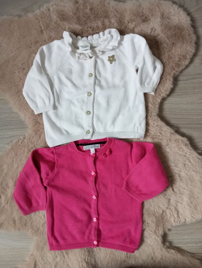 Lot de 2 gilets fins, taille 6 mois. Le blanc marque Tape à l'oeil et le rose marque Kitchoun.