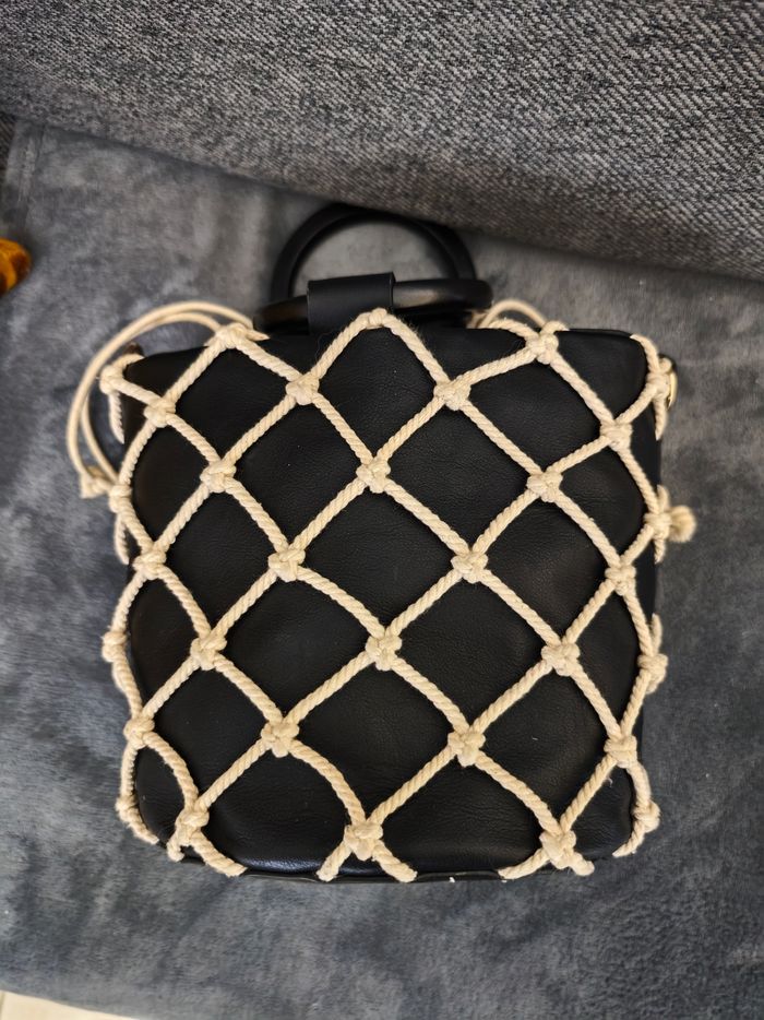 Petit sac imitation cuir noir et filet Très peu utilisé 20 cm de hauteur 20 cm environ de largeur
