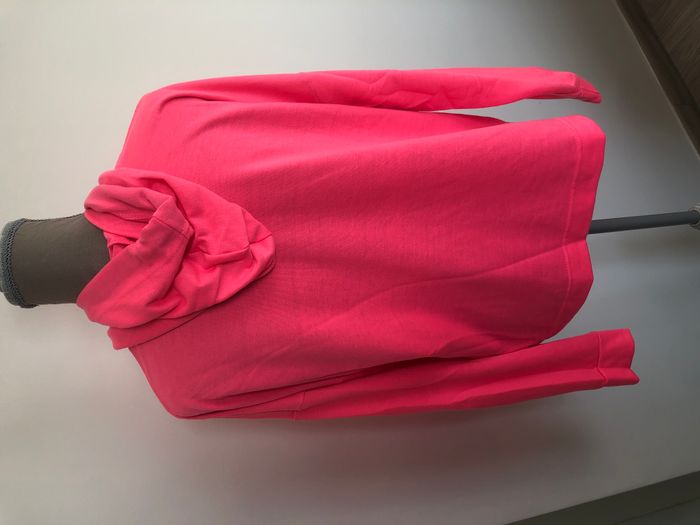 Joli pull femme, manches longues et capuche. Rose fluo Marque Ergee Taille 42FR, 40EUR Aisselles: environ 58 cm Légèrement décousu au niveau du col devant (visible sur le photo 1)
