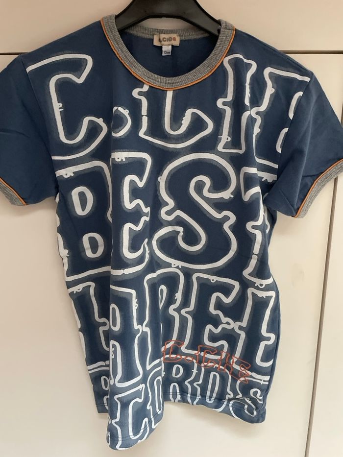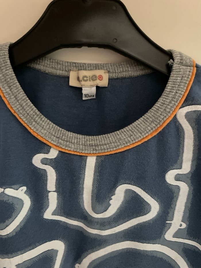 T-shirt manches courtes, marque la compagnie des petits. Taille 10 ans, couleurs, bleu, blanc, gris orange
