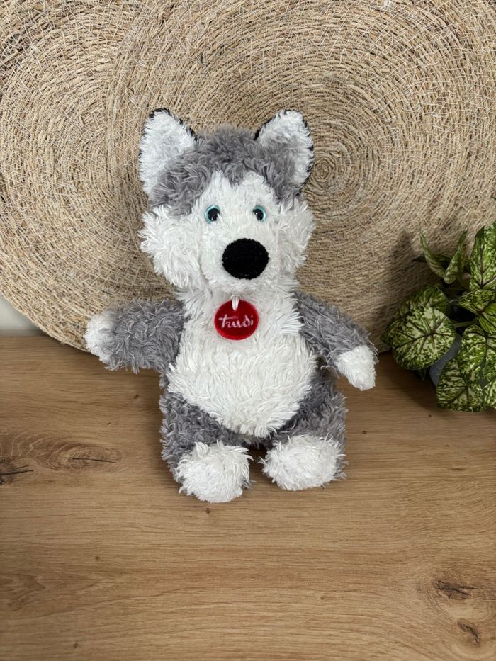 Doudou chien gris blanc husky médaille rouge trudi  - photo numéro 1