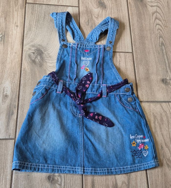 Robe en jean a bretelles avec boutons pression, ceinture avec Taille 24 mois #robefille24mois