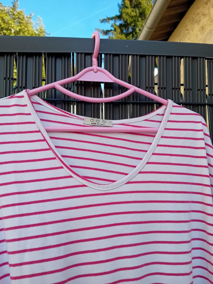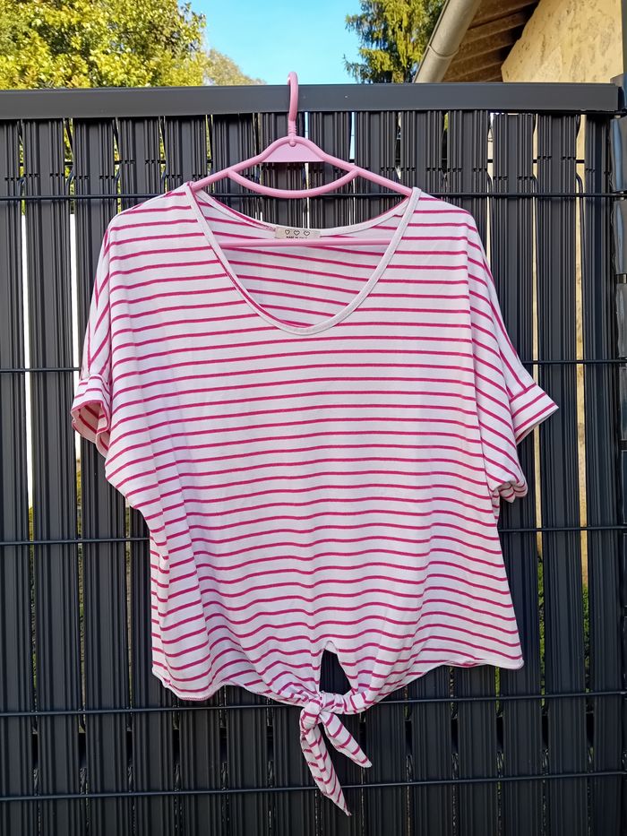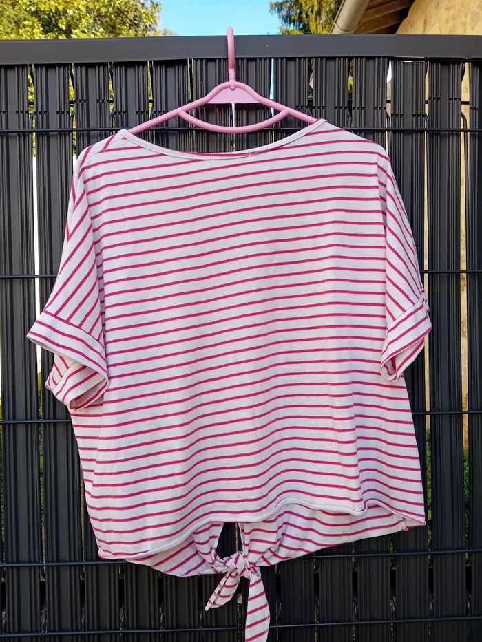 T-shirt à rayures blanc et rose avec noué à la taille avec manches courtes En viscose et elasthanne Taille unique Marque Made in Italy